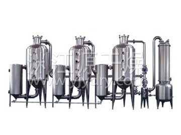 ◎节能效果显著,比单效蒸发器节约蒸汽量30%。物料在密闭系统中蒸发浓缩,环境清洁舒适;且本系统设备独特的除沬装置,防止跑料现象。