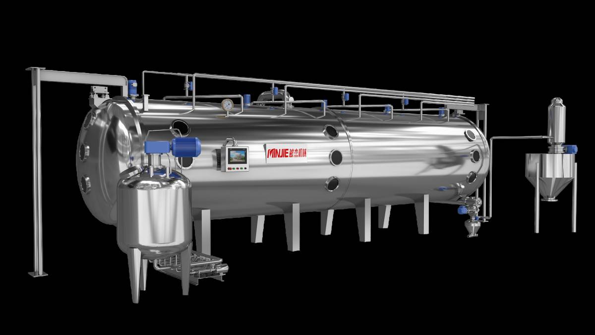 分层干燥阶段:物料随网带进入多段式干燥区域,加热板通过导热油或蒸汽间接加热,热量穿透物料层,使水分汽化;汽化后的水蒸气经冷凝系统快速液化分离,由真空泵排出;