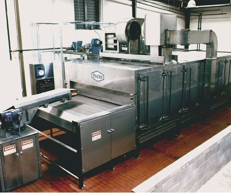 灵活: 采用向上或者向下的气流(或者二者兼而有之),对于产品的冷却、输送机设计和加热系统的选择都是根据产品和生产工艺而决定。