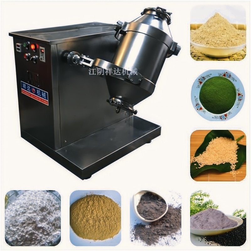 该机由于是低速双径向立体混合,因此不但适用于各行各业的普通物料混合,还适用于含油多,含糖多,易燃易爆,升温固化或转化物料的混合(如:药物,食品添加剂,化工助剂,纺织浆料等).尤其对粉末涂料来说,既适用于成品粉后混合,特别是花纹,双色粉,金属粉等特殊粉的后混后以及回收粉,超细粉的后混合成品粉均混,产品混+疏松剂(三氧化铝)后混合,也可用于大容量粉末