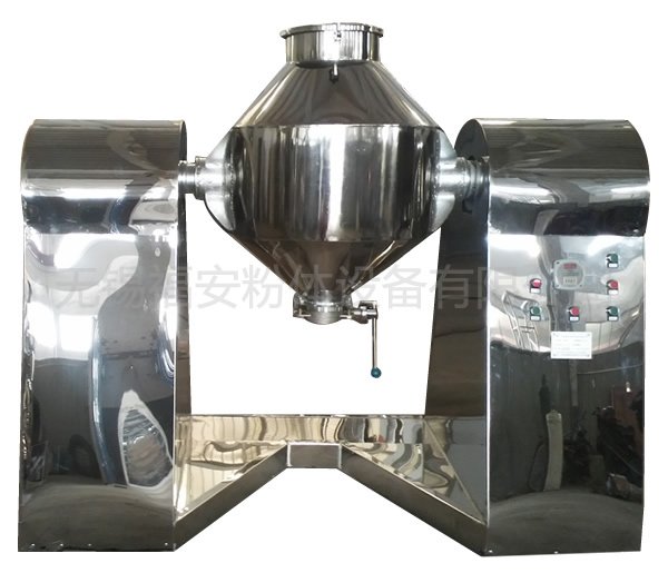 该机同V型混料机的功能相似。将粉末或料状物料加入到双锥容器中,随着容器的不断旋转,物料