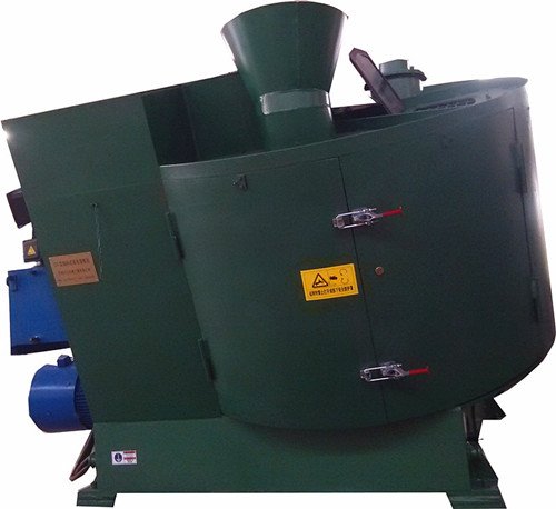 底盘旋转、有高速转子,低速搅拌铲,筒壁刮板,自动化程度高,人机界面技术,液压控制,耐磨材料。