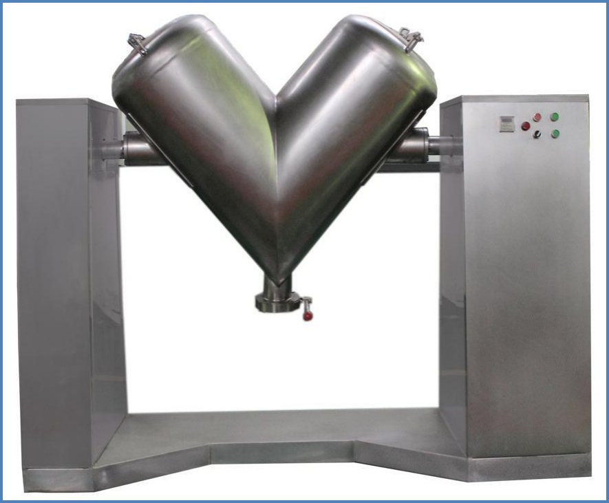 V型混料机适用于对粉体的均匀混合,比一般的混料机设计更合理,混合效率更高, 操作更简便。混料筒由不锈钢制作,内外壁抛光,结构设计上无死角, 清洗方便、彻底。筒体上部有两个加料口,分别将不同的物料加入,下部有一个出料口。筒体可由电器点动控制转动至任意角度,以便于出料。