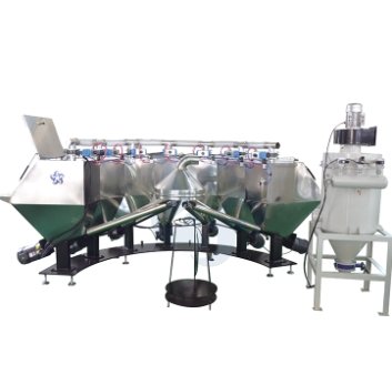 主要用于需要准确称量配比多种微小助剂,配比助剂数目可在3-9种之间,大量程为50千克,精度可达10克左右。此设备整体结构紧凑,占地空间小,操作方便。