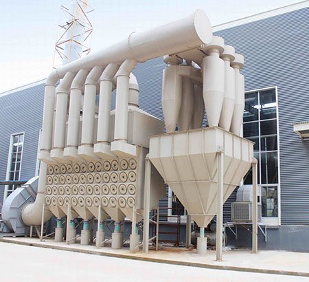 该种除尘器,是由旋风筒体,集灰斗和蜗壳(或集风帽)三部分组成,按筒体个数区分,有单筒,双筒,三筒,六筒等五种组合,每种组合有两种出风形式:Ⅰ型水平出风和Ⅱ型(上部出风)。对于Ⅰ型双筒组合者,另有正中进出风和旁侧进出风两种组合形式,Ⅰ型单筒和三筒只有旁侧时出风一种形式,四筒和六筒组合则只有正中进出风形式,对于二型各种组合,可采用上述Ⅰ型中的任意一种进风位置,该种除尘设备具有阻力小,除尘效率高,处理风量大,性能稳定,占地面积小结构简单,实用廉价等特点。适用于各种机械加工,冶金建材,矿山采掘的粉尘粗、中级净化。