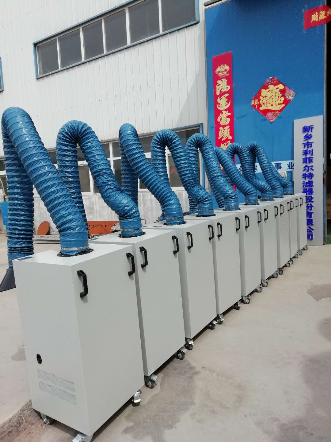 小型单臂单筒焊烟净化器是经济实用性的一种小型可移动的净化器,成本低,高效率,适合单个工位使用,可以满足各种面积的焊接车间的全面治理,一个中央系统能同时处理多个焊接工位的烟尘净化。主要净化方式是在大型综合车间、厂房的车间外安装净化系统,车间内设置引风管道,将室内烟气引至管道系统处理并排放,通过自由移动吸臂为零散焊接点净化烟气。除尘净化设备通过风机引力作用,焊烟废气经万向吸尘臂或吸风口吸入镀锌螺旋管道再进入设备风口,设备进风口处设有阻火器,火花经阻火器即被阻留,烟尘气体进入滤芯过滤室,利用重力与上行气流,首先将粗粒粉尘直接降至灰斗,微粒烟尘被滤芯捕集在外表面,洁净气体经空气除尘滤芯过滤净化后流入洁净室,在经过活性炭吸附尘去除非异味后经出风口排出。