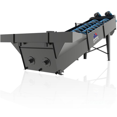 螺旋洗砂机(洗石机)是一个倾斜安装的洗砂槽,矿浆由槽的上方给入,粗重颗粒沉入槽底,由螺旋输送到槽的上端排出,成为返砂。如与磨矿机构成闭路时,则返砂进入磨砂机再磨;细、轻颗粒随矿浆流通过槽的下端溢流排出,达到分级的目的。螺旋洗砂机(洗石机)主要适用于水电、建材、冶金等行业进行的除杂、分级、洗选等作业。螺旋洗砂机(洗石机)设备工作时,机器转子采用中心结构,螺旋叶片安装在中心轴上,由减速器连接到中心轴上进行工作。设备借助固体颗粒的比重不同,因而在液体中沉降的速度不同的原理,进行机械分级的一种洗选设备。