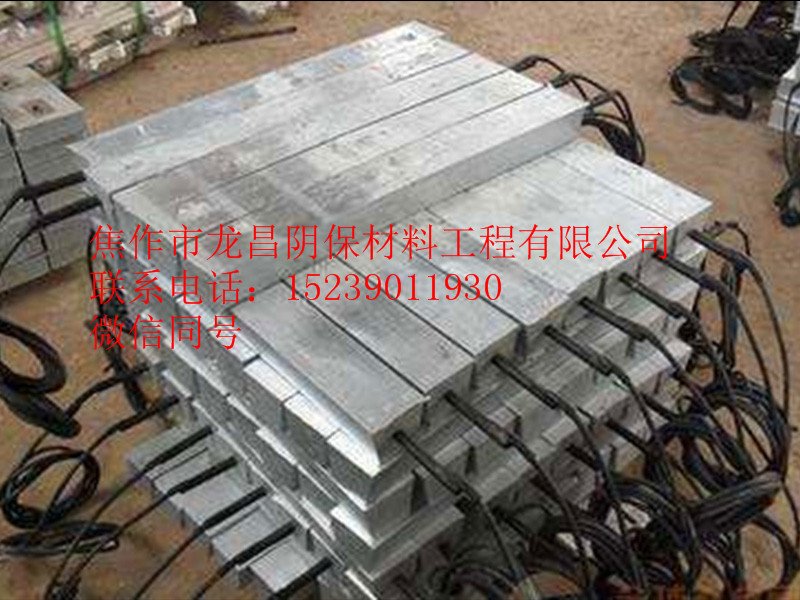 锌也可做成镯式阳极,主要应用在水下和海底管道上,一种是作成块状然后焊接在钢支架上形成一个圆形,还有直接做成半环状,直接扣在管道上。