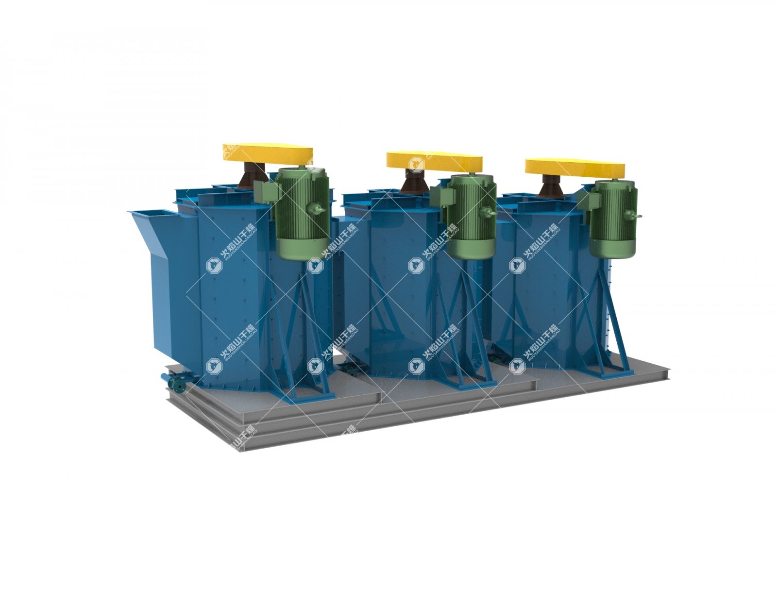被叶片推挤出去,沿桶壁流动,由于物料不断送进,经过擦洗的物料便不断从排矿口排出,完成擦洗工作。