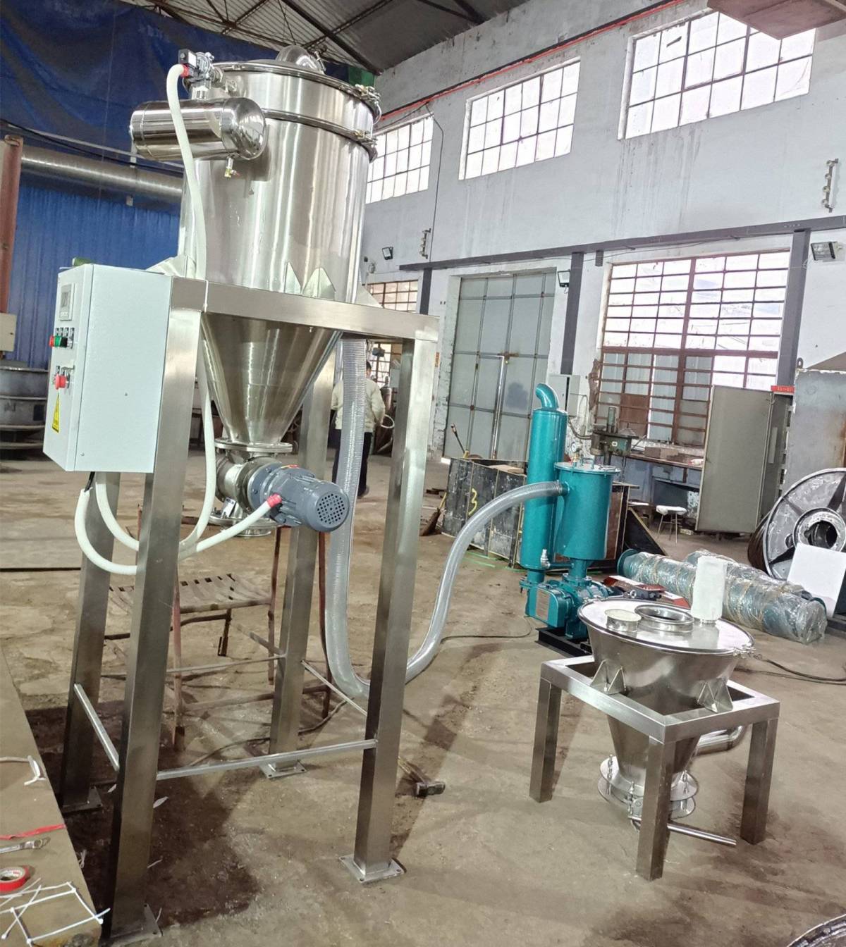 此款真空上料机采用正压输送,根据客户现场物料情况,可做正压或负压。密封性好,无分尘,无污染,输送能力强。