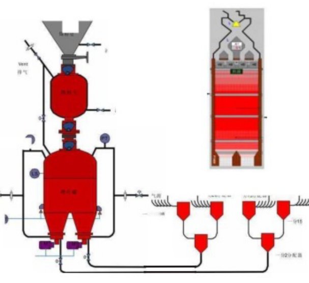 喷吹系统喷吹步骤分为装料、加压、喷吹、泄压四个过程,可随炉况进行相应动作:
