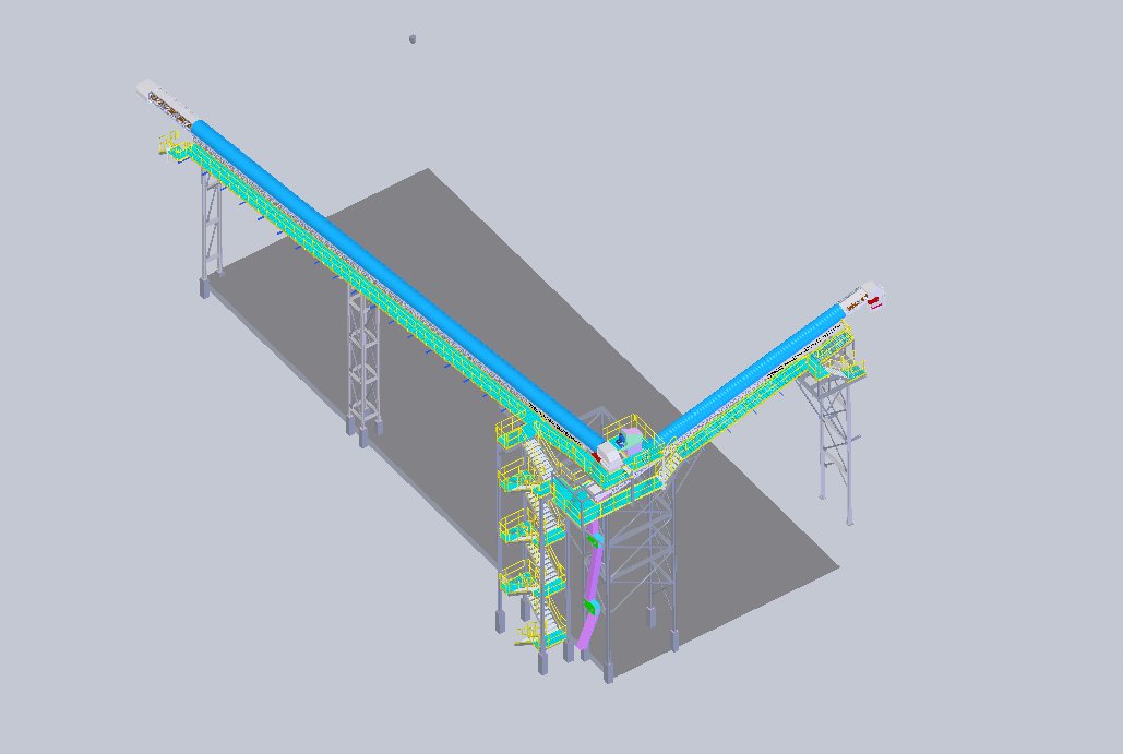带式输送机是一种摩擦驱动以连续方式运输物料的机械。主要由机架、输送带、托辊、滚筒、张紧装置、传动装置等组成。