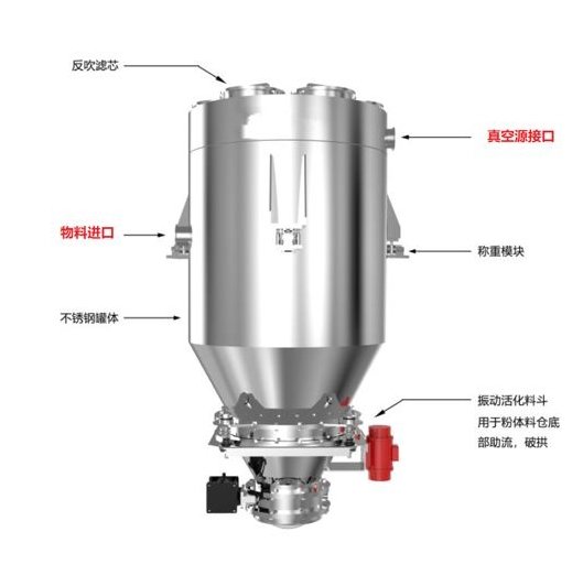 适用于高混机,反应釜等各种混合搅拌设备的粉体和颗粒的称重计量和真空输送。