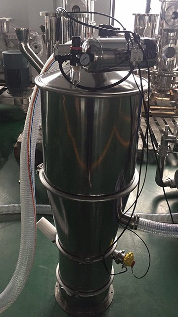 真空上料机能自动地将各种物料输送到包装机、注塑机、粉碎机等设备的料斗中,也能直接把混合的物料输送到混合机(如V型混合机、二维混合机、三维混合机等)中,减轻了工人劳动强度,解决了加料时粉尘外溢等问题,是制药厂、食品厂通过GMP认证、促进清洁、文明生产的**设备。真空加料机由真空泵(无油、无水)、不锈钢吸料咀、输送软管、PE过滤器(或316L不锈钢过滤器)、压缩空气反吹装置、气动放料门装置、真空料斗和料位自动控制装置等组成,整套系统设计合理、制造精美。
