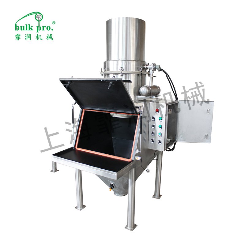 小包拆包机是针对装有容易扬尘的超细粉末和高纯度粉末的小袋需拆袋投料而开发的设备,它能将小袋的粉体落入储料仓,该设备内部安装过滤器清洁装置及反吹系统,用于将倾倒过程中产生的粉尘收集过滤,并将洁净尾气排入大气,使工人能在清洁的环境中轻松工作。