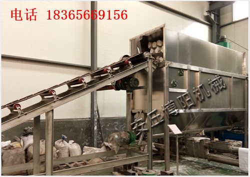 该设备是通过皮带上料机将物料传送到滑板上并依靠重力沿滑板下滑,在下滑过程中由快速转动的刀片将包装袋割开,物料滑入滚筒筛进行筛分。在由管链输送机等其他输送设备输出,破损的包装袋、杂质、结块物料被滚筒筛带出机体。