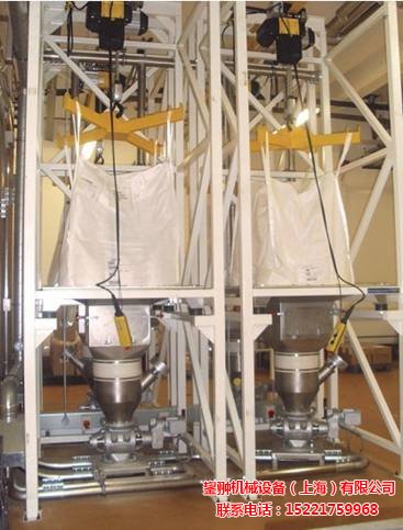 吨包拆包站、吨包卸料站可与电动葫芦相连,吨装袋用电动葫芦提升到卸料口上,人工解开吨装袋下的卸料口,打开光圈阀,吨装袋内的物料靠自身重力落入储料斗,可以通过振打器或按摩器促使下料,此操作简单、便捷。应用于塑料及塑料添加剂、混合剂、污水处理澄清剂、水泥等干燥的粉沫、颗粒物料、粉粒混合物、片状物料的拆包场合。不同种类的卸料设备,适用于不同种类的物料场合,其机构视物料的特性、吨装袋的结构、吨装袋的外形尺寸以及起吊工作的种类而定。