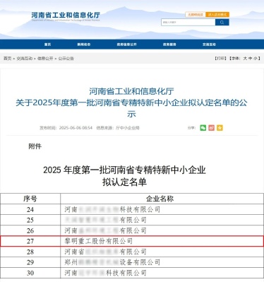 实力彰显! 黎明重工获评河南省专精特新企业