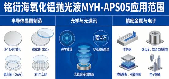 一、产品简介:铭衍海(常州)微电子氧化铝抛光液MYH-APS05是一款专为半导体、光学及精密金属等高端制造场景研发的酸性氧化铝抛光液,以高纯度 α- 氧化铝为磨料,采用分散技术配制的稳定水性悬浮液。专为化学机械抛光(CMP)工艺设计,通过机械研磨 + 弱化学腐蚀的协同作用,实现低损伤、高效率的超精密表面平坦化处理。二、铭衍海氧化铝抛光液MYH-APS05产品特点:1.精密粒径控制液体粒径 200-