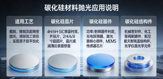 碳化硅抛光液 MYH-SCPS500碳化硅抛光液简介碳化硅抛光液 MYH-SCPS500 是第三代半导体碳化硅材料加工的核心精密抛光耗材,通过化学机械协同抛光,实现碳化硅晶片 / 器件表面原子级平坦化,精准控制表面粗糙度与面型精度,消除加工损伤层,保障碳化硅基器件在光电、半导体领域的高性能应用。超净抛光(行业术语):通过化学腐蚀 + 机械研磨双重作用,去除碳化硅加工产生的刀纹、变质层及亚表面损伤,