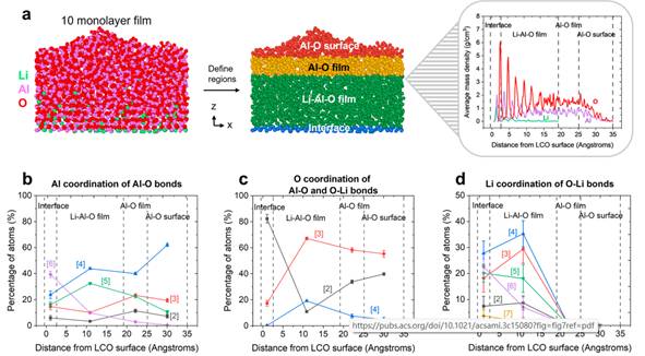 核心问题: 为什么超薄(<2 nm)的原子层沉积(ALD)Al2O3 涂层能改善锂离子电池层状氧化物阴极的电化学性能?其原子尺度界面结构是什么?研究方法:采用分子动力学(MD)模拟作为核心研究手段,以克服实验上表征超薄(~1 nm)薄膜界面的困难。使用 INTERFACE 力场(IFF),并验证其对于 LiCoO2 和 Al2O3 体系结构、能量属性的可靠性。构建不同厚度(1-10个单层)的