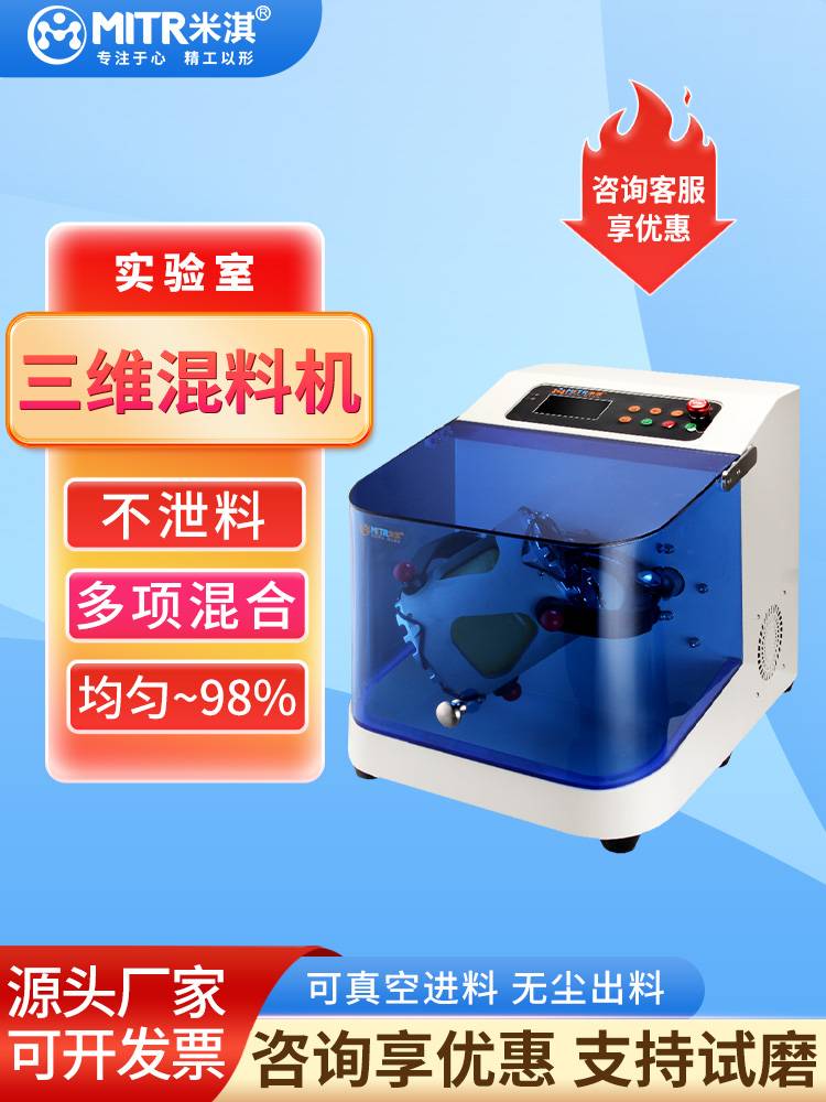 在粉体材料加工领域,混合环节的质量直接影响着最终产品的性能与品质。对于众多中小型企业以及科研机构而言,一款既能满足多样化混合需求,又具备高性价比的小型混合设备至关重要。长沙米淇仪器设备有限公司精心打造的小型三维混合机,凭借其独特的设计与出色的性能,成为众多用户的理想之选。创新设计,实现三维高效混合小型三维混合机采用了先进的三维运动原理,通过混合筒的多种运动方式,如旋转、摆动、翻转等,使物料在混合筒