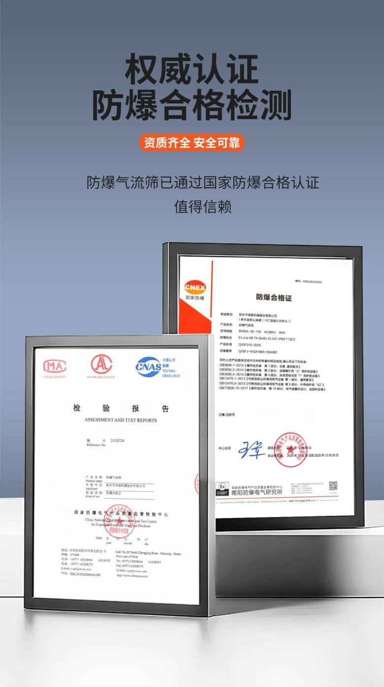 在气流筛分设备中,电机是核心动力部件,就像人的心脏一样重要。然而在粉尘环境下,电机和轴承面临着严峻的考验——微细粉尘一旦侵入轴承内部,会与润滑油混合形成研磨膏,加速轴承磨损,最终导致电机故障。【技术解读·气密封原理】高服卧式气流筛配置了气体保护系统,采用气密封形式,为关键部件构筑了一道“空气屏障”。系统工作时,洁净压缩空气持续通入轴承与电机腔体,使腔体内气压略高于外部环境。由于内外存在压差,外部含