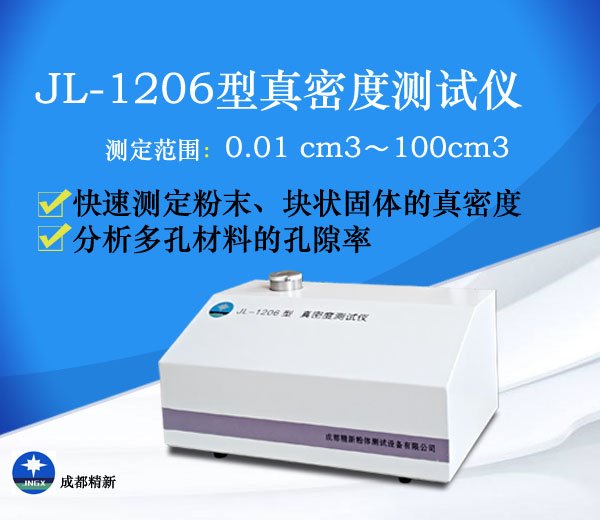 成都精新研发的JL-1206型真密度仪,测定体积范围:0.01 cm3~100cm3,能测量各种粉体、固体的真密度。(液体不能测试)