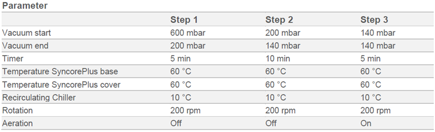 使用 SyncorePlus Analyst R-12,按照 表1 所列参数将萃取物浓缩至 1mL