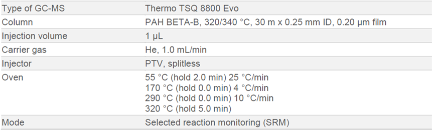 因此,测定PAHs含量至关重要。本应用说明介绍了使用步琦 SyncorePlus 固相萃取盖,通过 SPE 柱萃取加标了 PAHs 的水样。PAHs 用乙腈和甲苯的混合溶液洗脱至 SyncorePlus Analyst 的容器中,随后将溶剂浓缩至残余体积,用于 GC-MS 分析。该结合了萃取-蒸发的样品制备方法无需额外的样品转移步骤。