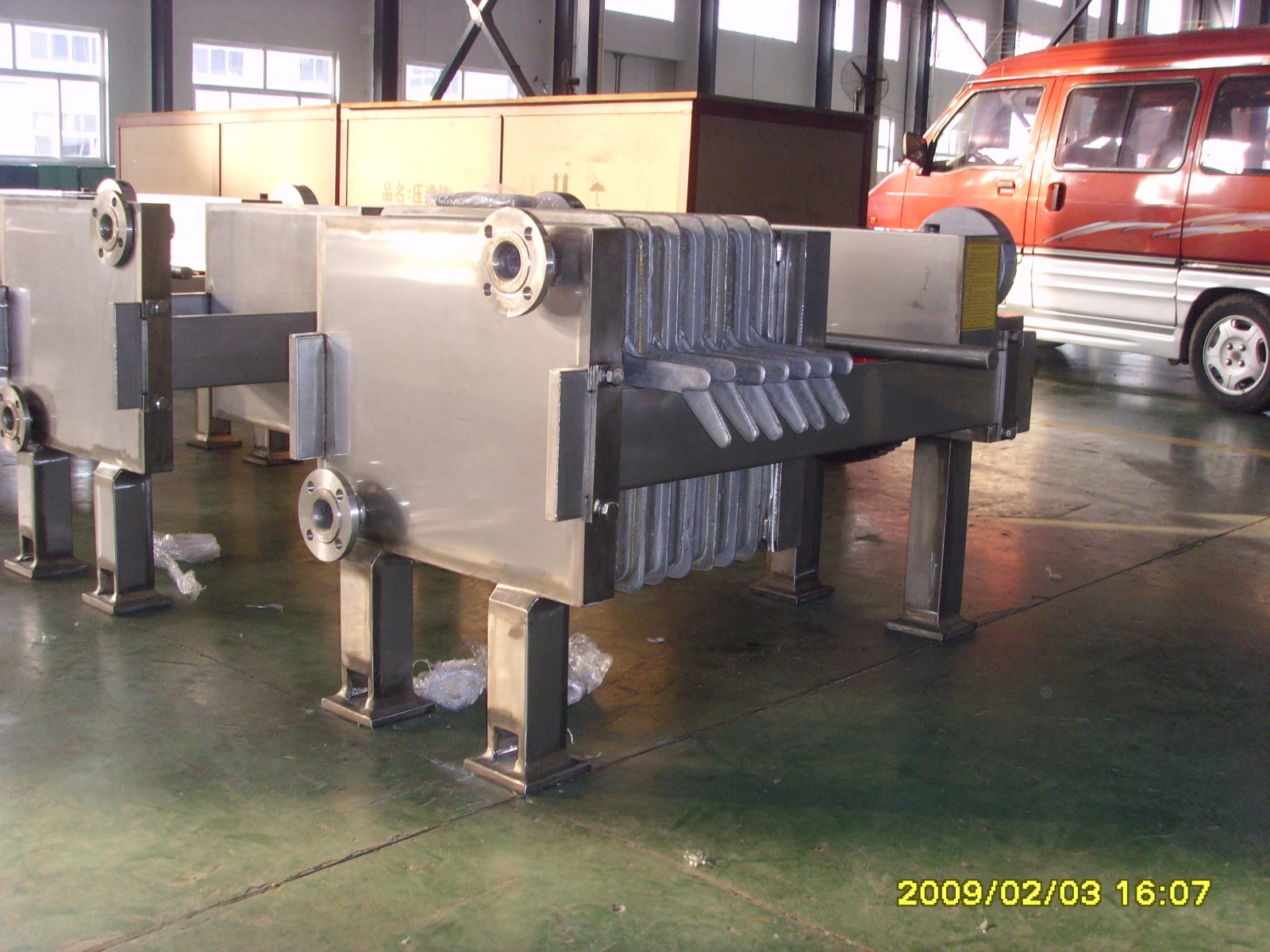 2.板框过滤器配上微孔滤膜是目前解决化工、制药食品等行业过滤活性炭,微粒的较好设备,保证100%不流碳,流量大,拆装方便。