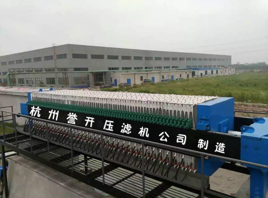 2、其机架、液压电器,滤布与厢式压滤机近相同,但于应用了高压隔膜压榨系统,其机架的设计作了突出于耐压强度的提高,提高强度率1.6倍。保障在隔膜压榨时产生的巨大反弹压力时压滤机的安全稳定。