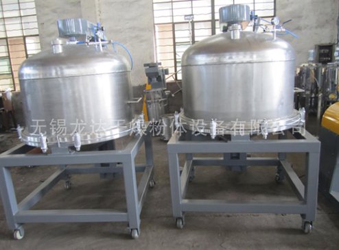 该设备是一种间歇式操作的微压过滤器,固体、液体便于收,固液分离快回收率高,能将小于1um的细小颗粒分离出来,排出的液体清净无色,设备结合本公司研制生产的专用升降机于一体,方便了用户的操作使用,使设备在同类产品中有技术水平