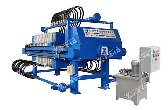 兴源压滤机生产的该新型压滤机在物料过滤完毕后,再通过高温蒸汽经特殊滤板进行干燥处理,直接的降低滤饼的含水率。