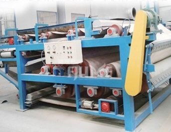 带式浓缩压滤机处理进浆浓度在1-3%以上的污泥,温度应在20C左右. 通过多道脱水环节,如重力脱水、回旋脱水和剪切脱水等处理,使污泥达到15%以上的干度.