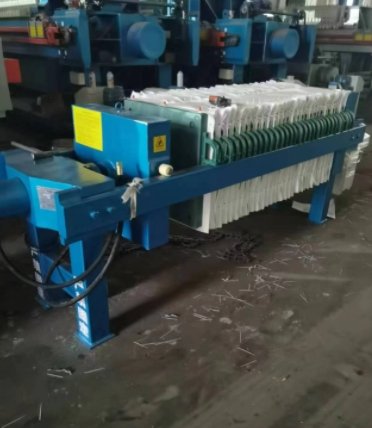 按下“推板压紧”按钮,此时压滤机主电机启动,推板前进的电磁阀打开,推板漫漫向前压紧,当压力达到电接点压力表规定的压力值时,主电机和电磁阀自动关闭,“保压”灯亮,压滤机处于保压状态。压滤机开始进料。