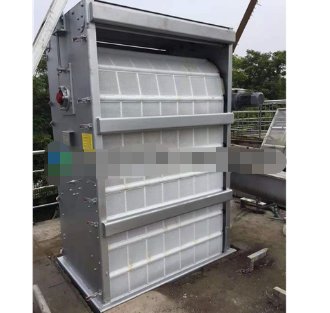 格栅安装于各种水厂取水口,用于拦截粗格栅未能拦截的漂浮物和水生物等,通过牵引链将固定在链节上的滚轮及网框沿轨道滚动运转,通过滤网的污水中漂浮物被滞留在倾斜的网面上,随着滤网旋转将滞留物运转到操作台面上,经过冲洗装置通过一组喷咀喷出的高压水,将滤网上的滞留物冲集于垃圾斗内,经垃圾槽排出。