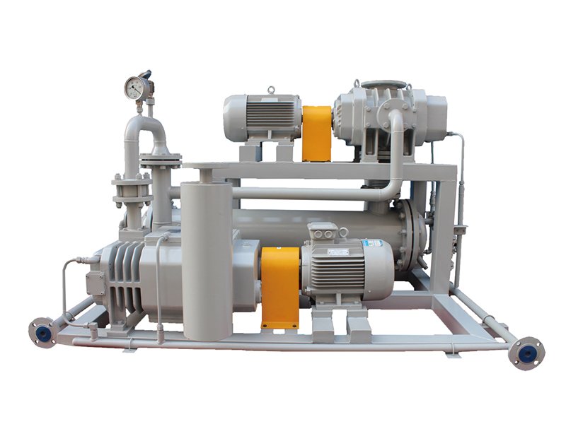 JZJQDP型气冷罗茨螺杆真空机组以ZJQ型气冷罗茨真空泵为主泵、以DP型螺杆真空泵为前级泵。由于主泵为气冷罗茨泵,该机组在数万帕的压差下即可启动,进一步提高机组抽气效率,缩短抽气时间,同时还可根据不同的工况需求选择各类控制仪表,实现机组的自动启停、自动过载和过热保护。该机组同样采用可长期工作在大气压到数十帕范围的螺杆真空泵作为前级泵,因而可代替以前用水环泵、往复泵、水喷射泵等真空泵作为前级泵的真空机组,能很好的解决传统机组的污染、废气回收等问题,故在医药、化工等行业具有极大的优势。