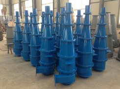 旋流器由上部一个中空的圆柱体,下部一个与圆柱体相通的倒椎体,二者组成水力旋流器的工作筒体。除此,水力旋流器还有给矿管,溢流管,溢流导管和沉砂口。