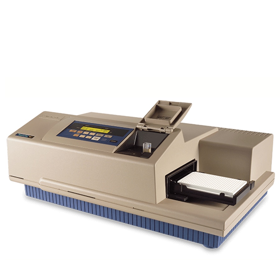 SpectraMax M3 是 Molecular Devices 公司推出的**双套"滤片+光栅“连续光谱、多功能读板机,并且拥有与单功能测读仪媲美的优异表现。它的测读模式包括:光吸收(紫外-可见光)、荧光强度(FI)和化学发光(Lum)。同时该读板机还内置比色皿插槽,可分别测读光吸收、荧光强度和化学发光。可调波长单色器与高质量的测读能力使得 SpectraMax M3 多功能读板机不仅适用于实验开发和科学研究,还适用于中低通量的药物筛选。