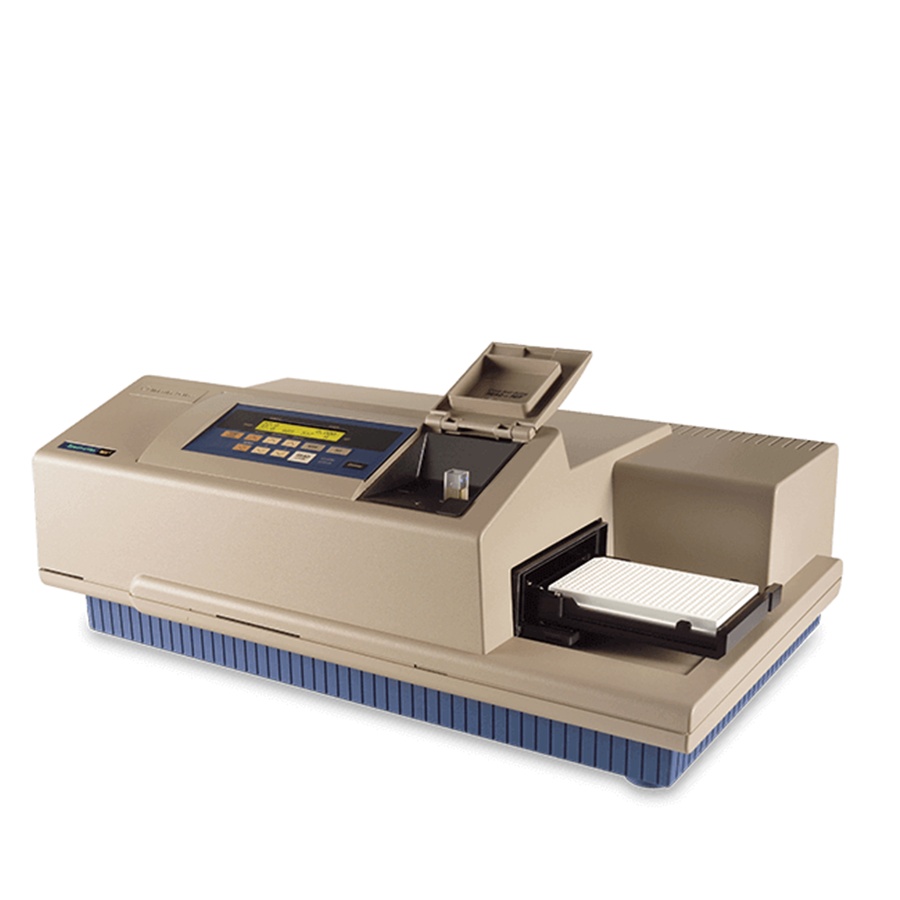 SpectraMax M4 是 Molecular Devices 公司推出的**双套"滤片+光栅“连续光谱、多功能读板机,并且拥有与单功能测读仪媲美的优异表现。它的测读模式包括:光吸收(紫外-可见光)、荧光强度(FI)、时间分辨荧光(TRF)和化学发光(Lum)。同时该读板机还内置比色皿插槽,可分别测读光吸收、荧光强度和化学发光。可调波长单色器与高质量的测读能力使得 SpectraMax M4 多功能读板机不仅适用于实验开发和科学研究,还适用于中低通量的药物筛选。