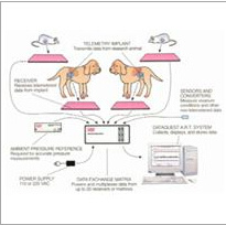 系统包括植入子(传感器,放大器,发射器),接收器,数据交换单元,数据采集单元,数据分析软件.植入体(Implants)是植入在动物体内的微型设备,它担负传感器, 放大器, 数字转换, 无线发射的功能。有用于测量心电、脑电、血压、体温等多种规格。