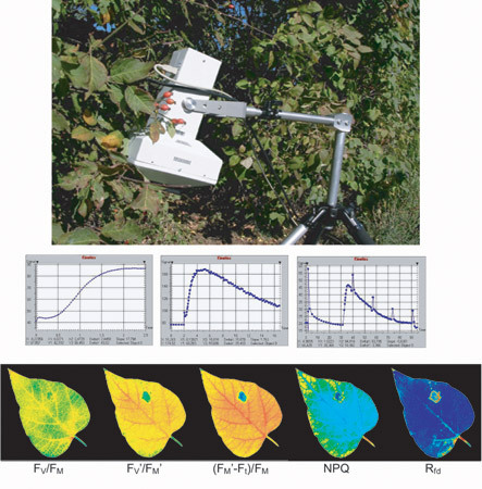 用途:用于检测植物发出荧光的动态变化和空间分布,Kautsky效应过程、荧光淬灭及其它瞬时荧光过程(瞬变)都可被摄取,从而提供2维荧光图像,测量计算常规的50多个荧光参数如F0, FM, FV, F0', FM', FV', NPQ, ΦPSII, FV/FM, FV'/FM', RFd, qN, qP等,这些荧光参数图像可用于研究植物的光合生理、优良品种筛选及果实的成熟过程等等,还可研究因病变、衰老、环境胁迫或突变造成的荧光变化。