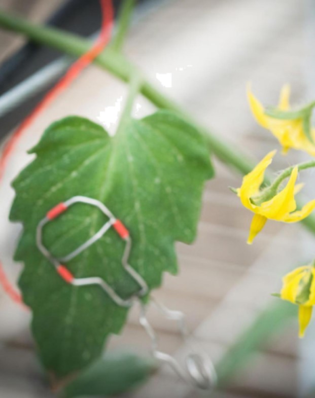 ※ 打开导线夹,把传感器附着到叶面上面。热敏电阻应当被放置到叶面比较低的阴暗面位置。