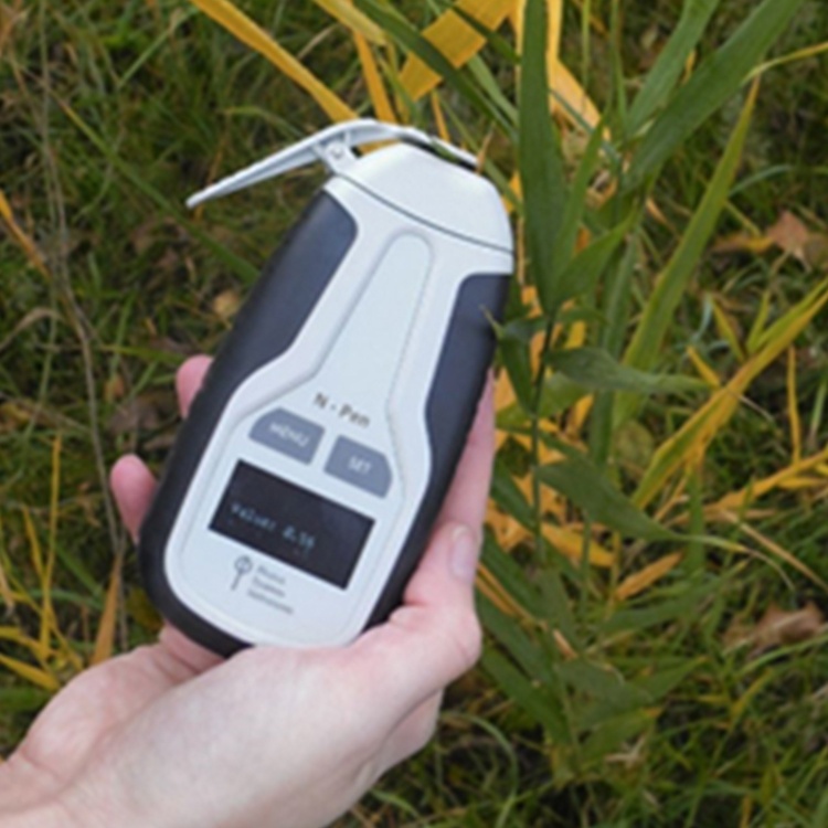 N–Pen N110掌上氮素测量仪是一款适用于测定生长季植物叶片有效氮含量的便携式仪器,可以在野外、实验室或者教学时进行快速无损的叶氮含量检测。该仪器根据植物叶片反射光谱的特性来测定氮含量。根据反射光谱计算的归一化绿度指数(Normalized Difference Greenness Index,NDGI)与叶绿素含量呈正相关关系,而叶片的叶绿素含量则由叶氮含量决定。经过对某种特定植物进行校准,即可直接测得氮素含量。