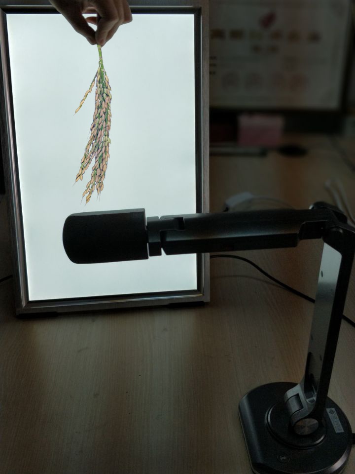 3、★穗子放稳后自动触发识别,单穗自动测量≤2秒(*快可测30个穗长、茎粗/分钟)。也可接条码枪或键盘输入样品编号来触发拍照测量。