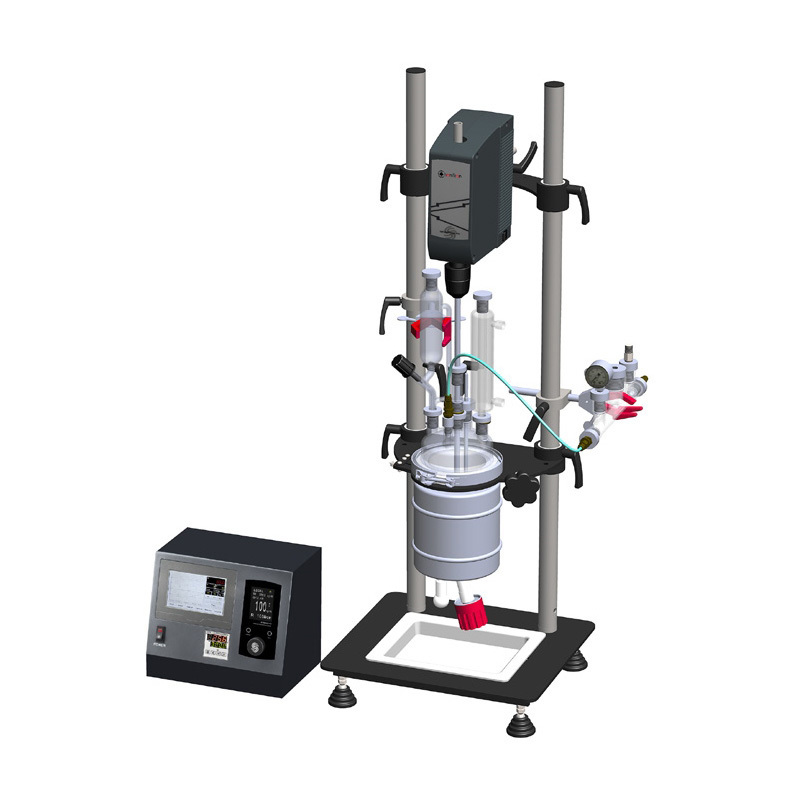 >反应釜附件齐全,包括:恒压加液漏斗、搅拌器、柔性搅拌轴、温度控制单元、温度计套管