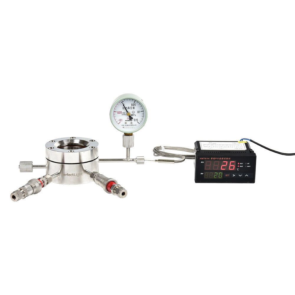 专为光热催化反应设计。采用釜式反应器,并针对气固相实验对反应器进行扁平化设计。标配压力传感器对压力进行监测的同时,配备有温度传感器可实时监测催化剂表面温度。