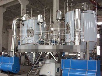 空气经过滤和加热,进入干燥器顶部空气分配器,热空气呈螺旋状均匀地进入干燥室。料液经塔体顶部的高速离心雾化器,(旋转)喷雾成极细微的雾状液珠,与热空气并流接触在极短的时间内可干燥为成品。成品连续地由干燥塔底部和旋风分离器中输出,废气由风机排空。