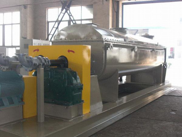 化工污泥烘干机是一种在设备内部设置搅拌桨,使湿物科在桨叶的搅动下,与热载体以及热表面充分接触,从而达到干燥目的的低速搅拌干燥机。结构形式一般为卧式,双轴或四轴。